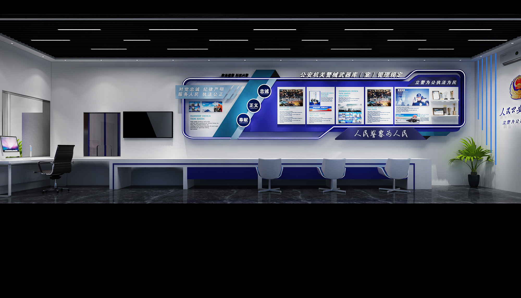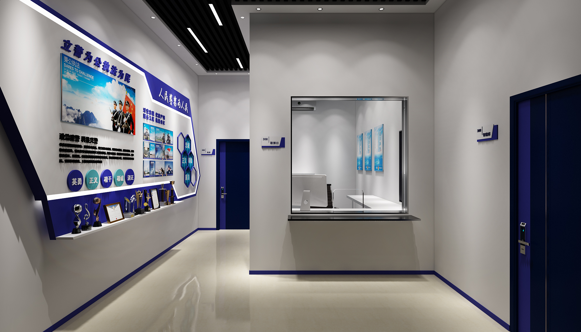 設(shè)計風(fēng)格:警局特殊部門打造科技神秘感,安全,高效,便捷,莊重典雅效果