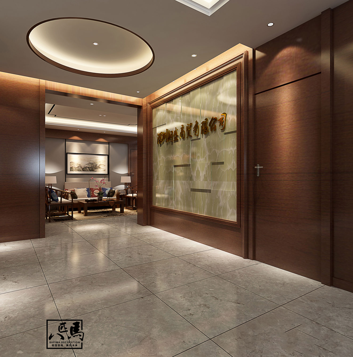 設(shè)計風(fēng)格:該司的辦公室設(shè)計風(fēng)格為新中式風(fēng)格,運(yùn)用大理石、木飾面、金屬線條及實木地板等中式元素加上現(xiàn)代元素的設(shè)計理念,時尚不失典雅,開放辦公區(qū)采用裸頂方式,提高空間層高,讓空間更通透更舒適。