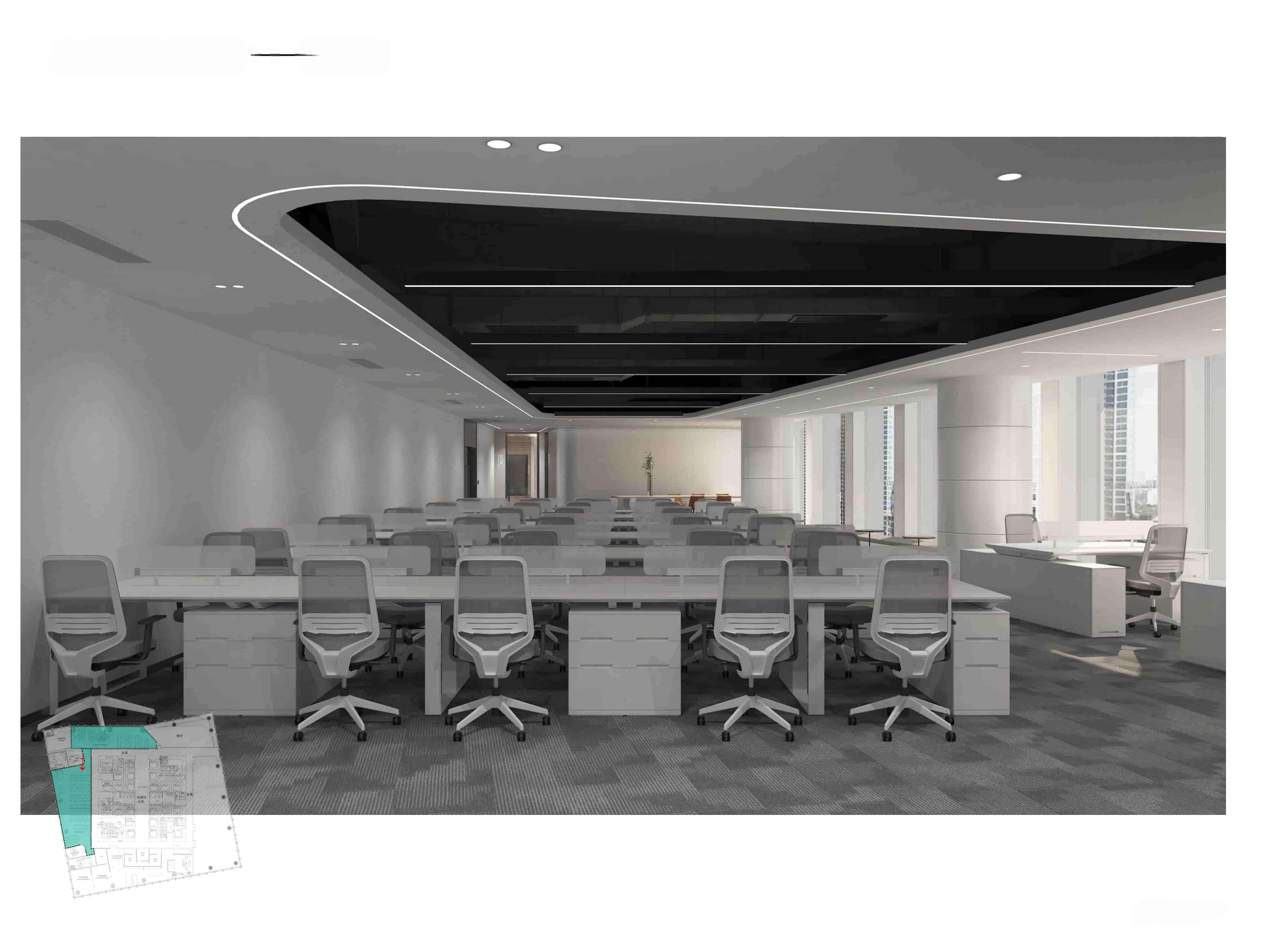 本設(shè)計(jì)為公司辦公區(qū)域,整體風(fēng)格簡(jiǎn)約現(xiàn)代。營(yíng)銷(xiāo)部以白色為主色調(diào),搭配灰色地毯,營(yíng)造簡(jiǎn)潔明亮氛圍。大面積辦公桌椅滿足多人辦公需求,天花板獨(dú)特的黑色區(qū)域與白色燈帶設(shè)計(jì),增添空間層次感與科技感。南入口處設(shè)置長(zhǎng)桌與舒適座椅,兼具臨時(shí)工位與接待功能,窗外城市景觀引入自然光線與開(kāi)闊視野。臨時(shí)工位及接待區(qū)同樣簡(jiǎn)潔實(shí)用,綠植點(diǎn)綴增添生機(jī)與活力。材質(zhì)選用環(huán)保耐用,燈光設(shè)計(jì)柔和明亮,旨在打造一個(gè)舒適、高效且富有活力的辦公環(huán)境,提升員工工作體驗(yàn)與企業(yè)形象。