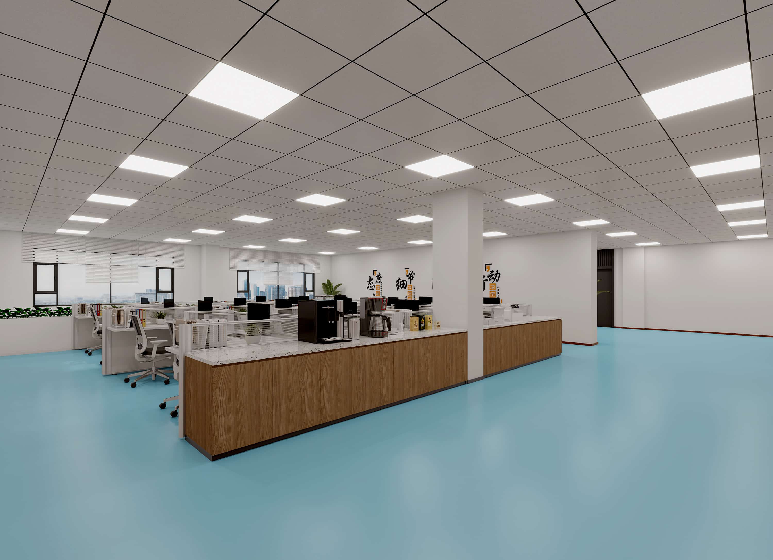 前臺區(qū)域,白色墻面搭配弧形玻璃背景墻,簡潔大氣,公司標(biāo)識醒目,彰顯企業(yè)形象。地面采用淺藍(lán)色,增添空間活力。辦公區(qū),白色天花板與墻面營造明亮氛圍,木質(zhì)隔斷與辦公桌增添溫馨感,綠植點(diǎn)綴生機(jī)盎然。休息區(qū),棕色沙發(fā)搭配簡約茶幾,提供舒適放松空間。整體設(shè)計(jì)注重空間利用與色彩搭配,通過簡潔線條與現(xiàn)代元素,創(chuàng)造一個(gè)高效、舒適且能激發(fā)員工創(chuàng)造力的辦公環(huán)境。