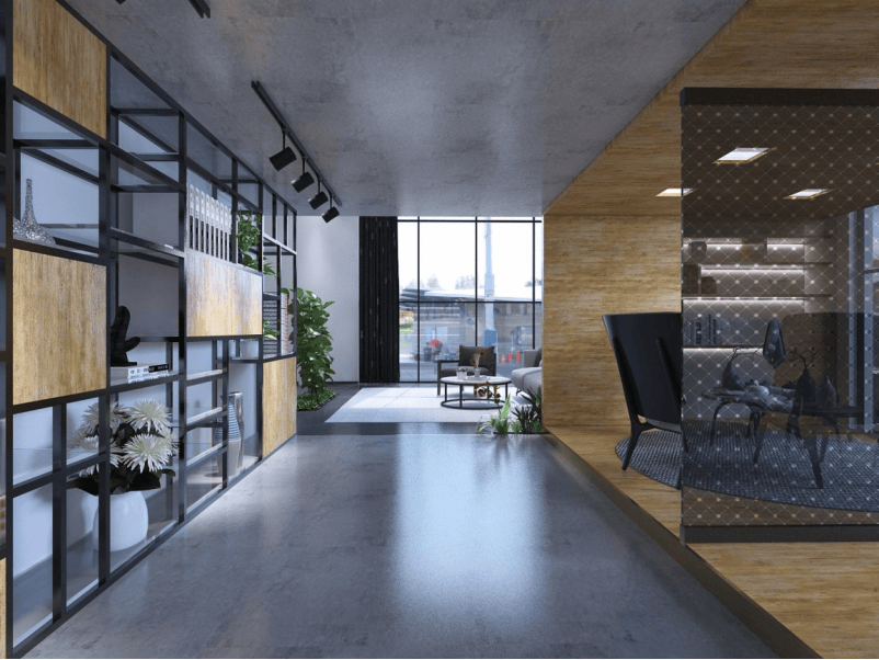 整體空間以黑白灰為主色調(diào),搭配木質(zhì)元素,營(yíng)造出簡(jiǎn)約而不失溫暖的氛圍。大面積的玻璃窗引入充足自然光,使空間更加明亮通透。