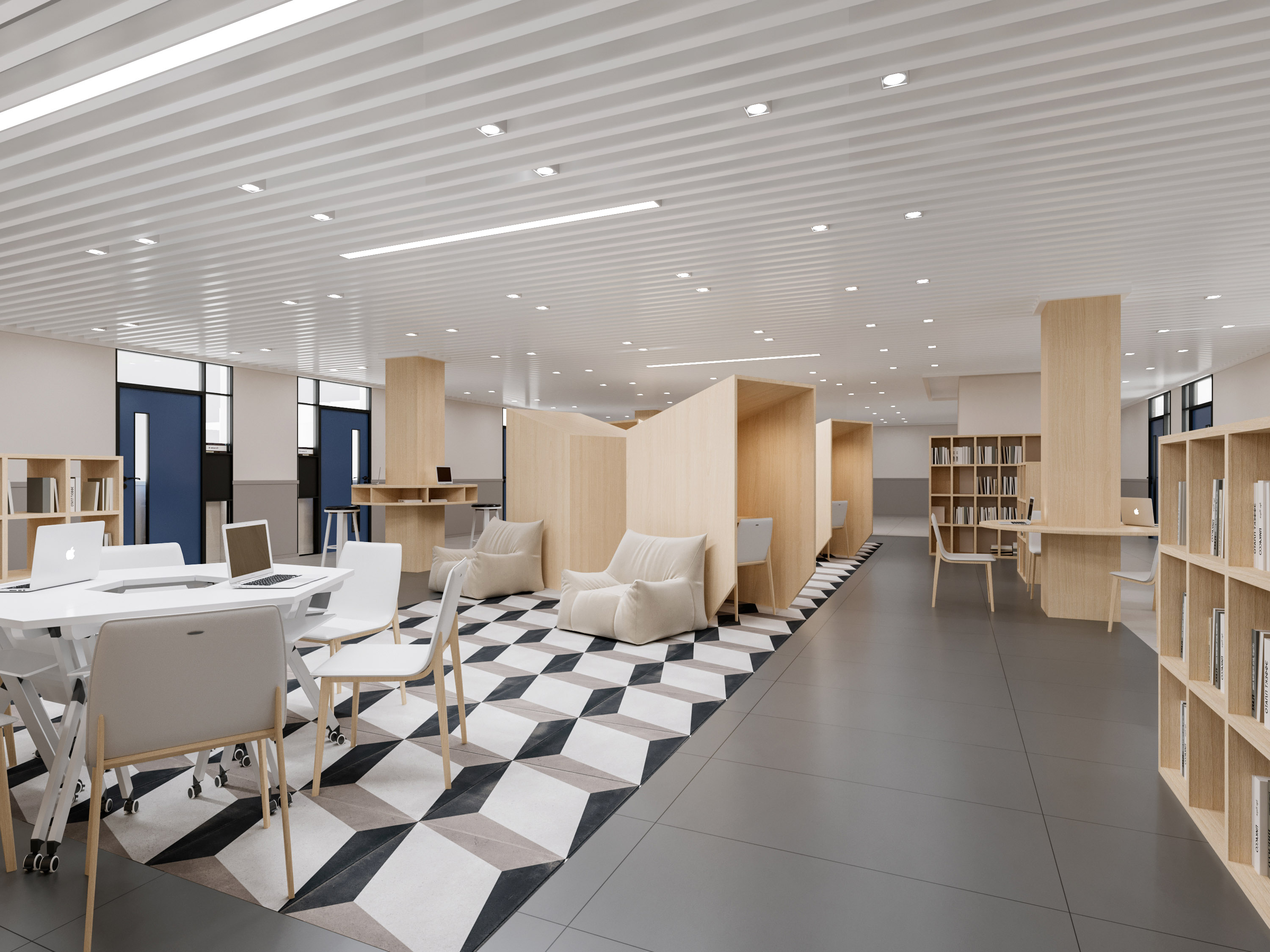該學(xué)校設(shè)計(jì)圍繞 “助力成長(zhǎng),融合美學(xué)與功能” 展開(kāi)。外觀上,建筑風(fēng)格典雅,紅頂白墻搭配大面積玻璃,兼具美觀與采光性,周邊運(yùn)動(dòng)場(chǎng)地滿足體育教學(xué)。室內(nèi)大廳以大理石地面、木質(zhì)墻面營(yíng)造大氣莊重感,學(xué)校標(biāo)識(shí)醒目。幼兒活動(dòng)區(qū)采用柔和色調(diào)與圓潤(rùn)造型,搭配童趣設(shè)施,激發(fā)孩子探索欲。衛(wèi)生間用清新綠瓷磚與木質(zhì)隔斷,安全又舒適。運(yùn)動(dòng)場(chǎng)館色彩明快,專業(yè)場(chǎng)地設(shè)計(jì)保障運(yùn)動(dòng)需求。整體空間既符合教育功能,又通過(guò)溫馨、活力的設(shè)計(jì),為師生打造優(yōu)質(zhì)學(xué)習(xí)生活環(huán)境。